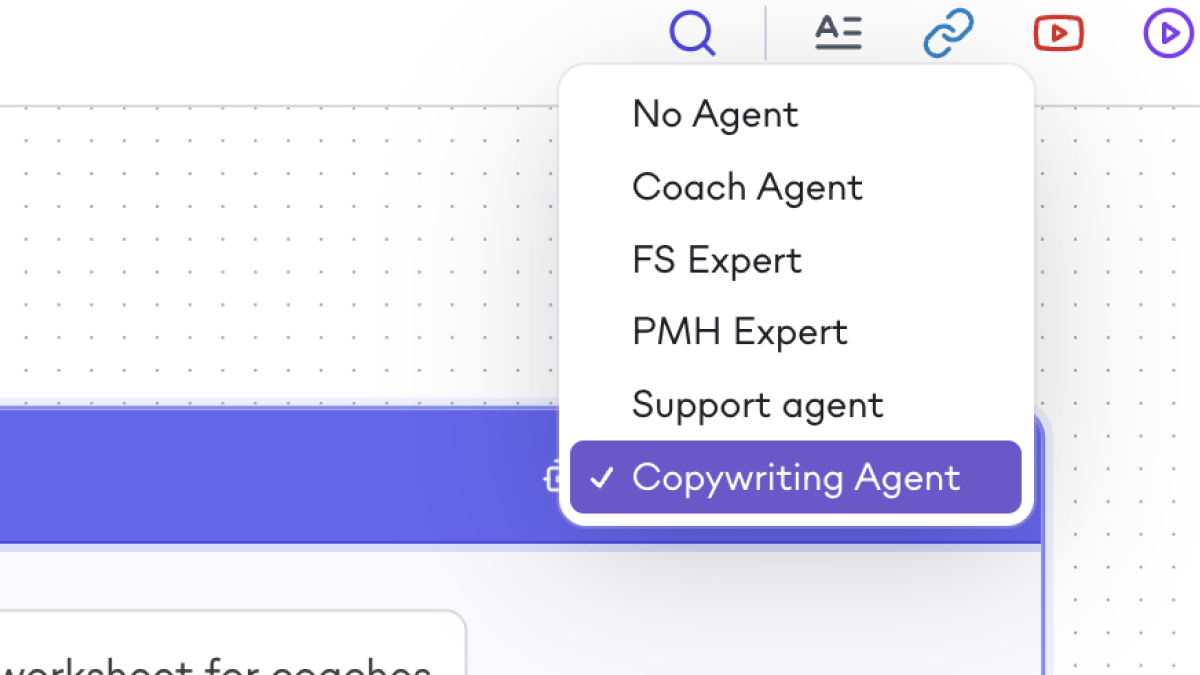Use your Agents inside the Canvas or Builder to brainstorm, write, or refine lessons, emails, and copy.
